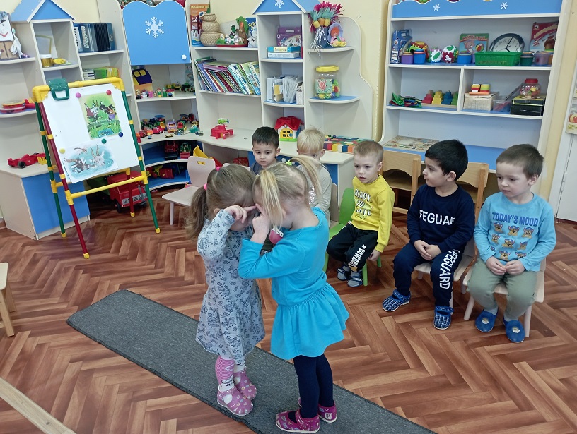 Дети второй младшей группы "Семицветик" (воспитатель Лукина А.В.), слушали произведение К. Ушинского, " Два козлика" и инсценировали встречу на бревнышке. Обсудили в беседе выход из конфликтной ситуации.