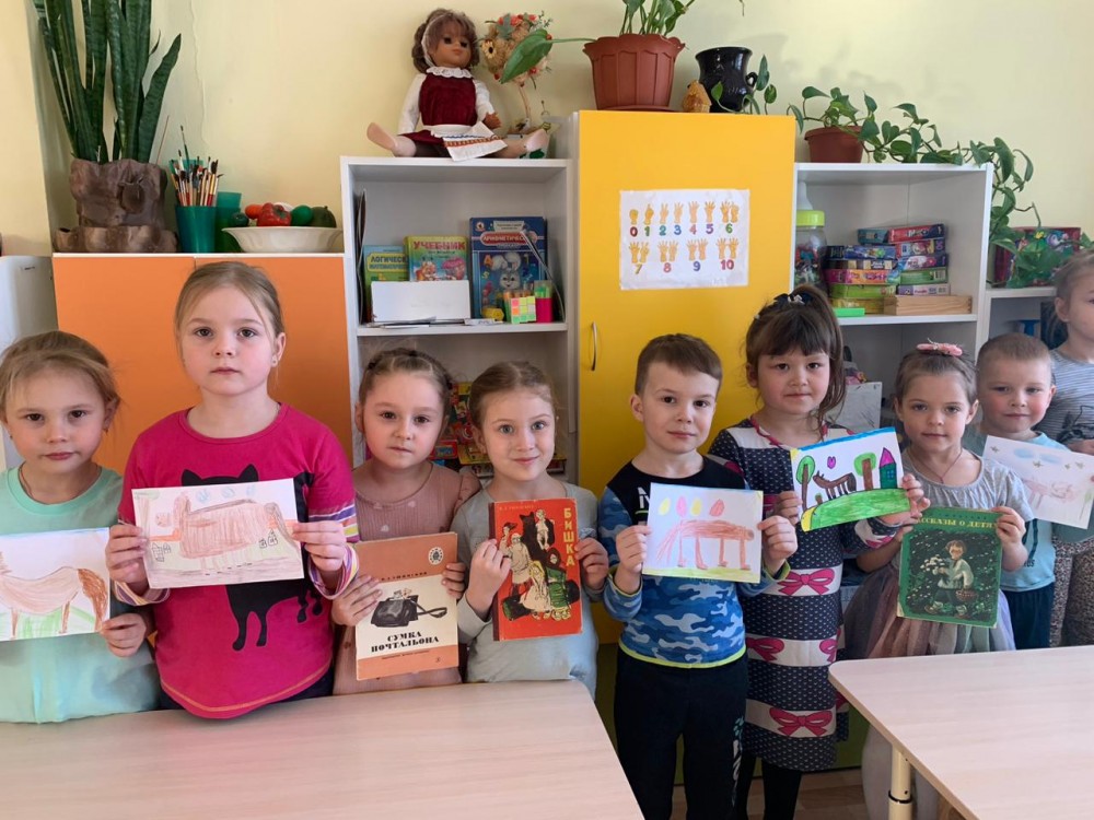 В старшей группе "Непоседы" (воспитатель Корнышева Т.В.) дети познакомились с выставкой произведений писателя, некоторыми рассказами автора. Выполнили зарисовки героев маленьких рассказов.