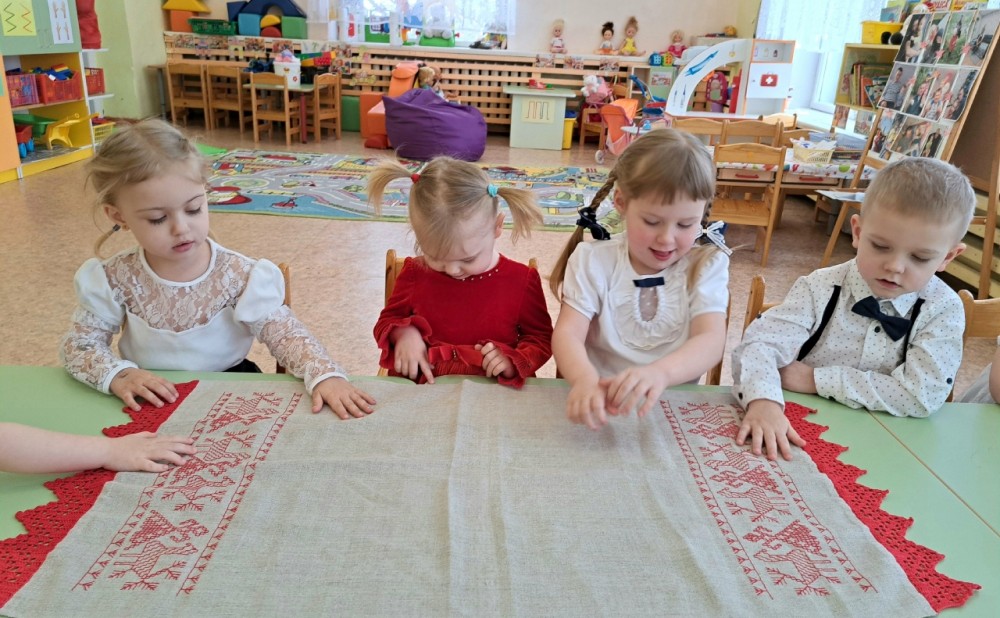 В нашем детском саду большое внимание уделяется этнокультурному воспитанию детей - знакомству с карельским языком, с карельскими праздниками, сказками, традициями. В феврале мы традиционно проводим мероприятия в рамках Дня родного языка. Малыши второй младшей группы "Почемучки" (воспитатель Пяркиева Наталья Николаевна) рассмотрели полотенце с вышивкой и познакомились с простейшими элементами карельского орнамента.