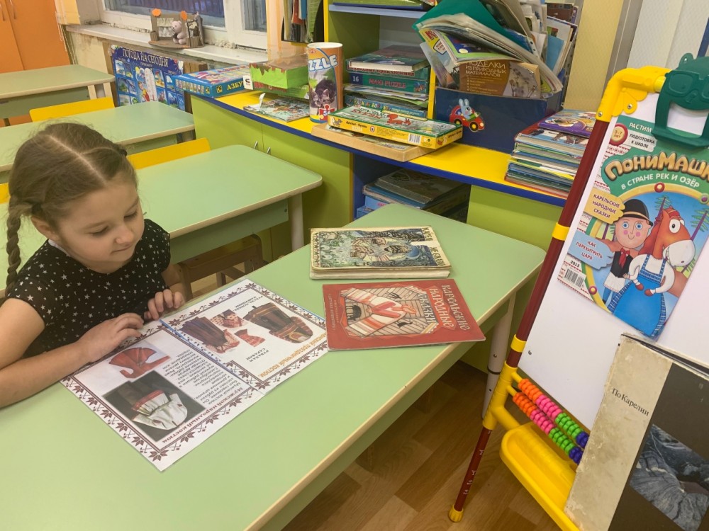 В подготовительную группу «Рябинка» (воспитатель Зайцева Елена Ивановна) пришел магистр наук. С помощью презентации повторили буквы родного языка, отгадывали загадки и кроссворды, познакомились с карельской народной сказкой «Умный сказочник». В журнале «Понимашка» рассмотрели карельские национальные костюмы и нарисовали карельские узоры, играли в дидактическую игру «Расставь предметы быта».