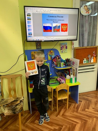 На занятии "Государственные символы России" ребята подготовительной группы "Лучики" (воспитатель Карпова Валентина Александровна) закрепили знания о символике страны: флаге, гимне и гербе. Дети прослушали гимн России, повторили цвета российского флага, познакомились с назначением герба. Ребята рассказали, в какой стране живут, назвали главу государства и столицу России.