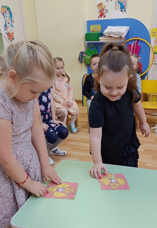 Воспитанники группы "Затейники" (воспитатель Бодян Лариса Алексеевна) беседовали о нашей Родине, её государственной символике. Посмотрели увлекательный мультфильм "Сказка о гербе России", рассматривали герб на монетах, собирали пазлы "Герб", раскрашивали.