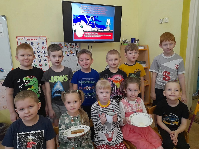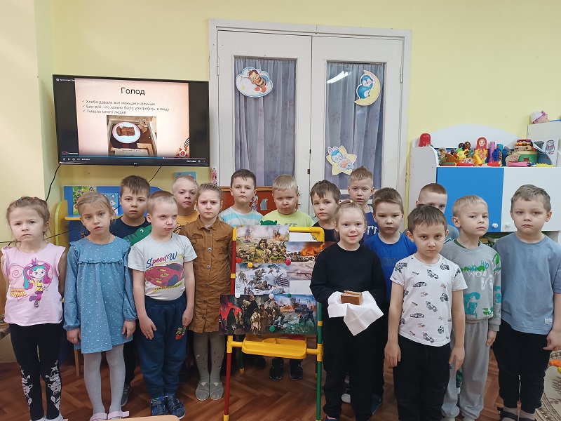 Сегодня в нашей стране вспоминают памятную дату - 80 лет со дня снятия блокады героического Ленинграда. Дети старшего дошкольного возраста узнали о подвигах жителей осадного города. В подготовительной группе "Березка" (воспитатель Генкель Светлана Юрьевна) расширили свои представления о героическом подвиге жителей блокадного Ленинграда в годы Великой Отечественной войны. Ребята рассмотрели маленький кусочек чёрного хлеба, это и была норма для детей во время блокады.