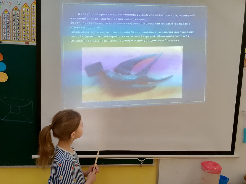 Дети подготовительной группы "Затейники" (воспитатель Блинкова Людмила Александровна) узнали о блокадной ласточке Ленинграда. Очень внимательно всматривались дети в старые фото, на которых изображена жизнь блокадного Ленинграда и слушали рассказ воспитателя. Рассказ о героизме не только солдат, защищавших Ленинград, но и героизм всех жителей города. Их веру в Победу, в силу и мужество. Веру в хорошие новости и весточки с "большой земли" им помогал поддерживать маленький символ ласточки с письмом. После беседы дети изготовили ласточку с письмом в знак уважения к стойкости жителей блокадного Ленинграда.