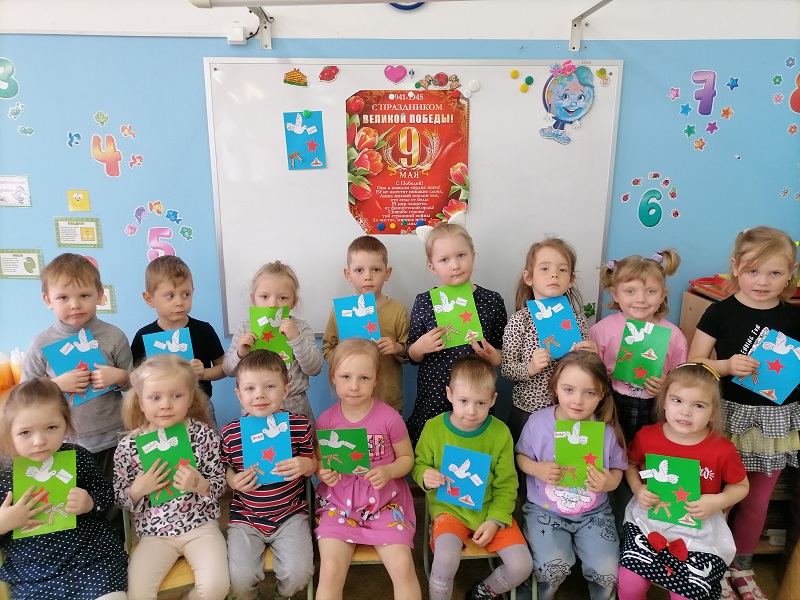 В преддверии Дня Победы дети старшей группы "Непоседы" с воспитателем Ананьевой Галиной Васильевной (здание Володарского, 39) подготовили праздничные открытки для жителей ЦСО "Приладожский Дом ветеранов" поселка Ряймяля. Дети средней группе "Ягодки" с воспитателем Кормоевой Екатериной Владимировной (здание Урицкого, 30А) изготовили открытки для Ветеранов с тёплыми пожеланиями и благодарностью за Победу.