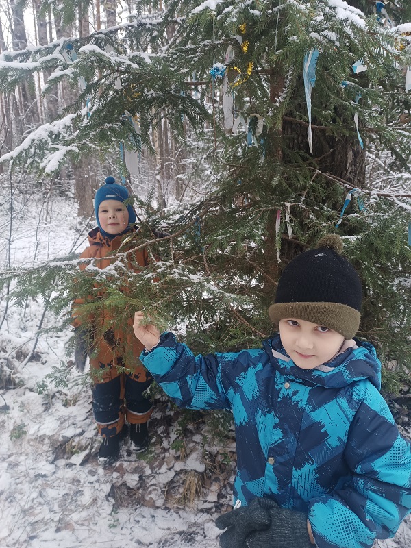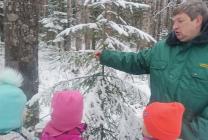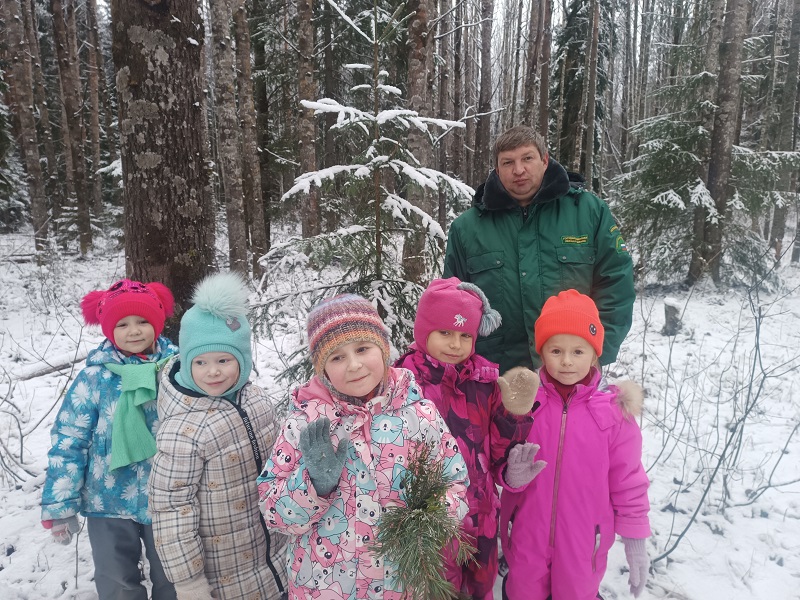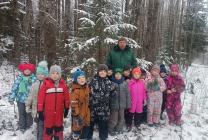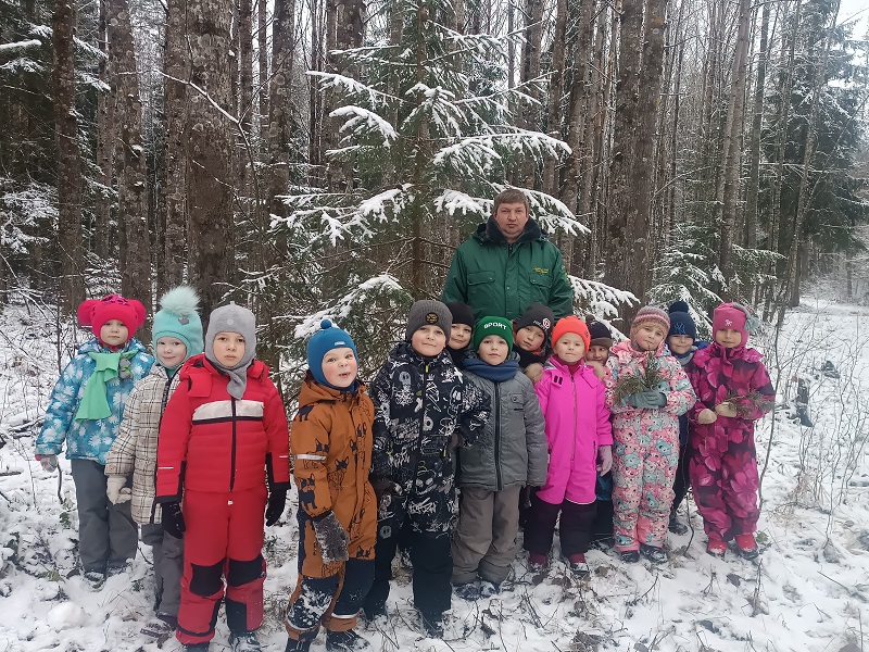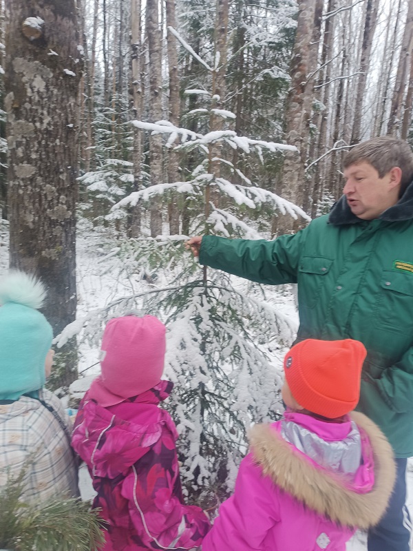 Сегодня подготовительная группа "Берёзка" (воспитатель Генкель Светлана Юрьевна) совершила прогулку в лес с инспектором Олонецкого центрального лесничества Мошниковым Дмитрием Николаевич. В лесу нашли красавицу ёлку, особенно красиво выглядит ёлка зимой, когда остальные деревья голые, а она зелёная и на ветвях иней. Дмитрий Николаевич рассказал, что ёлка полезное дерево, так как очищает воздух, помогает быть нам здоровыми. Хочется поблагодарить Дмитрия Николаевича за интересную и познавательную прогулку.