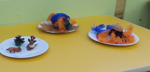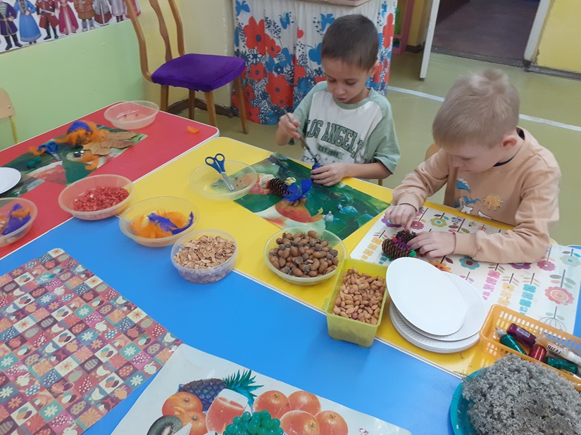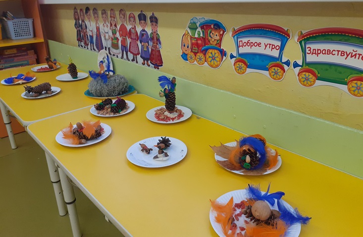 В подготовительной группе "Затейники" (воспитатель Бодян Лариса Алексеевна) состоялась выставки поделок из природного материала "Природа и фантазия". Получились: птички, рыбки, кот, динозавры, снеговик с собачкой из различного природного материала. Дети проявили воображение и фантазию во время изготовления поделок.