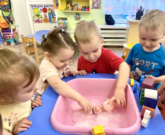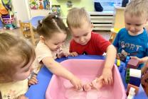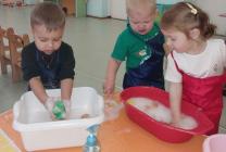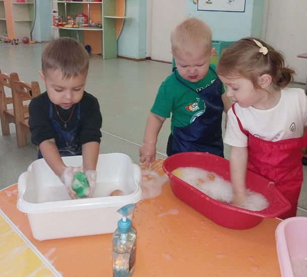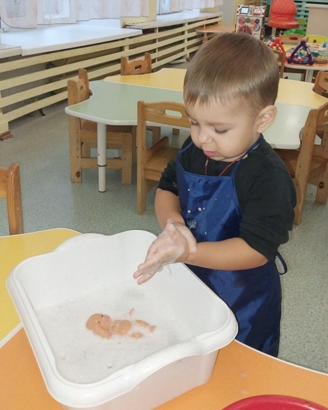 Для формирования начальных представлений о свойствах воды, умения экспериментировать в группе раннего возраста "Ягодки" (воспитатель Виглиева Елена Тойвовна) прошло занятие "Водичка, водичка". Малыши познакомились с потешками о воде. Много положительных эмоций вызвала игра "Искупаем куклу Катю".