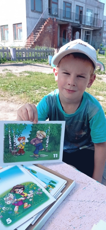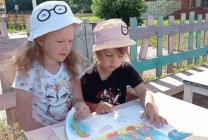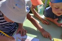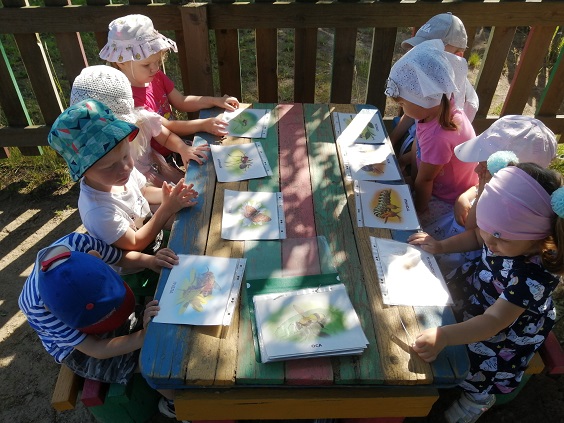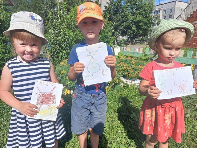 День второй - День экологической безопасности. Малыши первой младшей группы "Здоровячки" (воспитатель Ананьева Г.В.) рассматривали иллюстрации с изображением насекомых и птиц, наблюдали за муравьями, рисовали насекомых мелками. Дети средней группы "Ромашка" (воспитатель Зайцева Е.И., музыкальный руководитель Иванова-Плинкоева З.Н.) совершили "Путешествие на лесную полянку", где повторили правила поведения в лесу, исполняли песенки о лете и играли в веселые подвижные игры. Дети старшей группы "Калинка" (воспитатель Лекандер С.А.) смотрели обучающий фильм «Эколята-защитники природы», играли в экологические игры «Берегите природу», «Напоминающие знаки», «Юный эколог». Дети старшей группы "Василек" и подготовительной группы "Берёзка" (Тихонова А. Г., Горячева А. А.) совершили целевую прогулку на улицу Набережную для закрепления знаний экологической безопасности. Уточнили правила поведения у водоёмов, по пути закрепили названия улиц, дорожных знаков и правила поведения для пешеходов. Воспитанники подготовительной группы "Рябинка" (воспитатель Ригоева Л.Н.) беседовали о бережном отношении к природе, отгадывая загадки и подбирая картинки, учились правильно вести себя в природе, чтобы не навредить ей. Воспитанники подготовительной группы "Березка" (воспитатель Борисова И.В.) изготовили знаки "Правила поведения в лесу" и закрепили навыки безопасности в лесу.