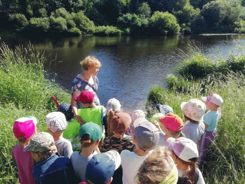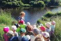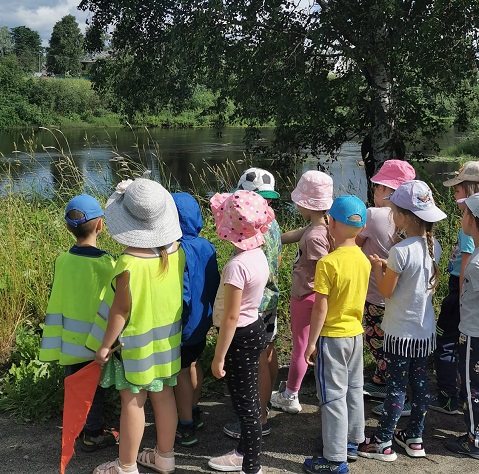 День четвертый - День безопасности вблизи водоемов. Дети средней группы "Почемучки" (воспитатель Богданова А.А.) и подготовительной группы "Затейники" совершили экскурсию к реке Мегрега, закрепили правила безопасного поведения вблизи водоемов. Воспитанники старшей группы "Калинка" (воспитатель Лекандер С.А.) беседовали о правилах безопасного поведения на реке, озере летом, сходили к реке Олонка, играли с водой на прогулке в «Рыбалку». Дети подготовительной группы "Рябинка" (воспитатель Ригоева Л.Н.) беседовали о безопасности на озере летом, читали книгу "Что мы знаем о воде?", играли с мыльными пузырями.