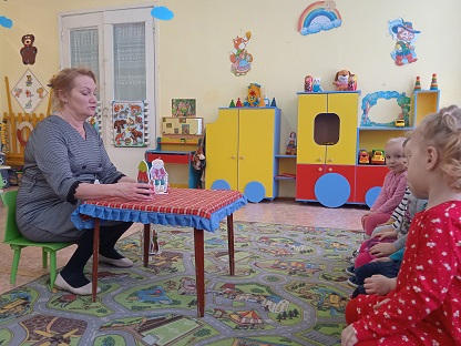 Малыши первой младшей группы "Малинка" (воспитатель Феклистова В.В.) смотрели настольный театр и сами стали артистами, инсценировали сказку "Репка".
