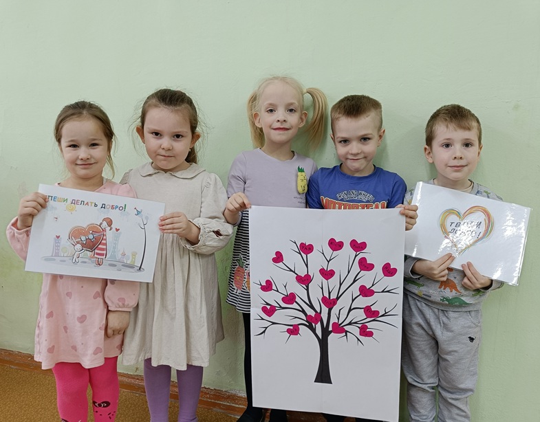 В День доброты дети старшей группы "Рябинка" (воспитатель Лекандер Светлана Александровна) играли в игры на сплочение,учились говорить друг другу комплименты,добрые слова, оформили Дерево Доброты, каждый ребенок наклеил свое сердечко,предварительно сделав какой-то добрый поступок. Сотрудникам детского сада подарили красочные сердечки и поблагодарили за их труд. День прошёл в добрых делах и поступках.