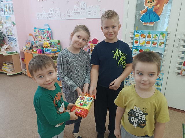 Дети подготовительной группы "Берёзка" (воспитатель Генкель Светлана Юрьевна), сходили в гости в среднюю группу " Ромашка", подарили настольную игру "Зверята" и научили правилам игры. Вот такой добрый поступок.