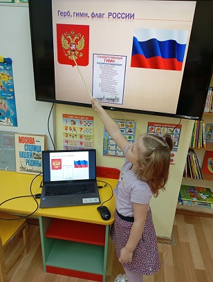 Ребята подготовительной группы "Рябинка" (воспитатель Генкель Светлана Юрьевна) закрепили символы Российского государства. Государственный символ, который представляет из себя красный геральдический щит с золотым двуглавым орлом, утвержден указом президента в последний день осени 1993 года-герб России.