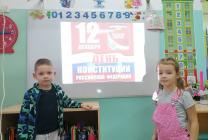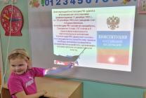 Сегодня в старшей группе «Рябинка» (воспитатель Кормоева Екатерина Владимировна) прошло занятие «12 декабря – День Конституции Российской Федерации». Ребята познакомились с основными законом России, закрепили знания государственных символов проведена беседа с просмотром презентаций: «Конституция и мы», «Флаг России», «Каждый ребенок имеет право». Большой интерес вызвала викторина по сказкам "Какое право нарушили герои сказки?".