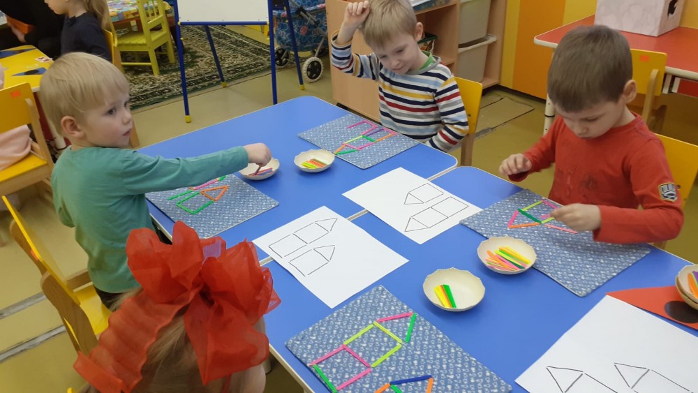 Воспитанники средней группы "Почемучки" (педагоги Бодян Л.А., Андреева М.И.) стали участниками квеста "Царица Математика". Дети выполняли задания в командах: выкладывали изображением по схеме из счетных палочек, играли в мемо игру "Геометрические фигуры", считали и ориентировались на листе бумаги. После выполнения каждого задания, команды получали часть пазла. В завершении игры дети узнали любимые сказки с числительными: "Три поросенка", "Три медведя", "Волк и семеро козлят". В благодарность за прохождение квеста Математика показала детям мультипликационный фильм "Цветик-семицветик".