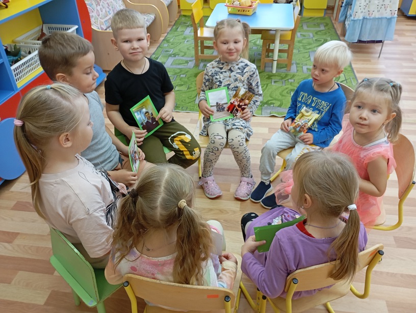 В группе "Карамельки" (воспитатель Бодян Лариса Алексеевна) прошла акция "Почитай мне книжку, папа" . Своими впечатлениями о прочитанном с папами дети поделились с малышами из группы "Ягодки". Обе группы поздравили своих пап праздничными открытками.