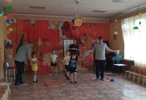 Накануне замечательного праздника "Дня отца", в спортивном зале (ул. Володарского, 39) царила атмосфера настоящего спортивного азарта и духа, потому что в гости к детям группы "Рябинка" пришли папы и дедушки, чтоб принять активное участие в совместном спортивном мероприятие. Его провели воспитатель Генкель Светлана Юрьевна и инструктор по физической культуре Андреевна Мария Ивановна. Смех, радостные крики наполнили спортивный зал детского сада. Папы, дедушки и дети вместе преодолевали препятствия. Было видно, как горят глаза у детей, когда они вместе с папой и дедушкой достигают цели и как гордо улыбаются взрослые, видя успехи своих маленьких чемпионов. Спортивное мероприятие доказало, что быть спортивным, здоровым и активным модно во все времена!