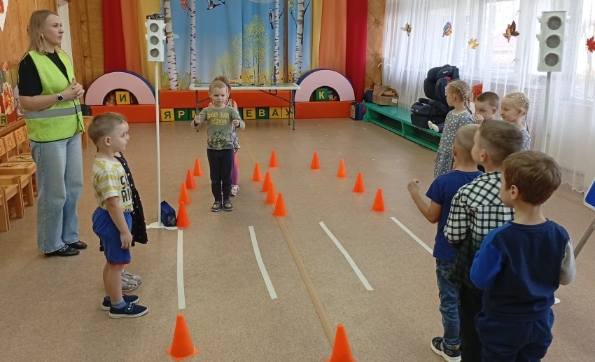 Воспитанники старших групп "Ромашка", "Почемучки" и подготовительных групп "Рябинка" и "Затейники" закрепили части дороги: проезжая часть, обочина, тротуар; правила для пешеходов и пассажиров, правила безопасного перехода проезжей части дороги на увлекательном занятии, которое провела руководитель Центра профилактики детского дорожного транспортного травматизма Яковлева Екатерина Александровна. Благодаря мобильному комплексу "Лаборатория безопасности" дети в игровой форме, в активной игре закрепили правила дорожного движения.