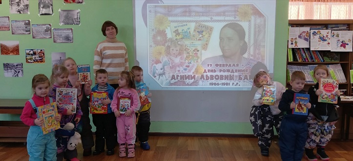 Ребята средней группы "Ягодки" (воспитателем Кормоева Екатерина Владимировна) побывали на экскурсии в детской библиотеке на мероприятии "В стране добрых стихов". Ребята познакомились с творчеством и биографией писательницы, рассказ сопровождался показом иллюстраций на большом экране. Все вместе вспомнили любимые стихи из серии "Игрушки" и даже обыграли некоторые моменты. По окончанию мероприятия ребята смогли поиграть с любимыми игрушками из произведений А. Барто, рассмотреть выставку книг, побеседовать с библиотекарем Светланой Евгеньевной, Дети приняли участие в акции "Дарите книги с любовью" и подарили книжки, которые передали ребята из первой младшей группы "Солнышко" (воспитатель Лаврентьева Ирина Андреевна).