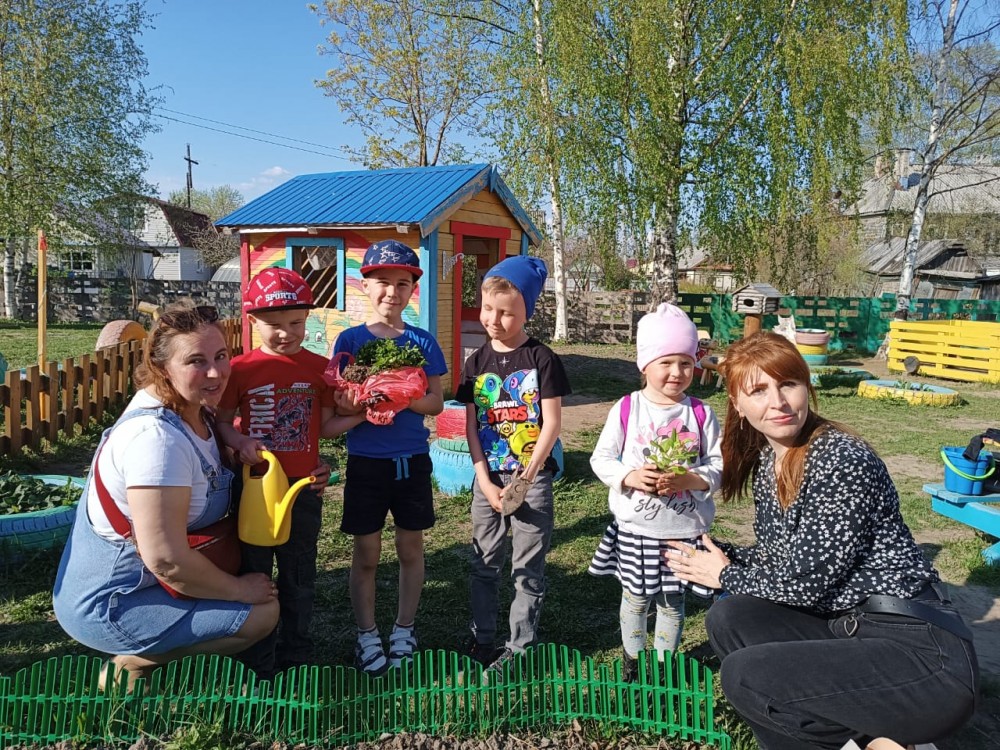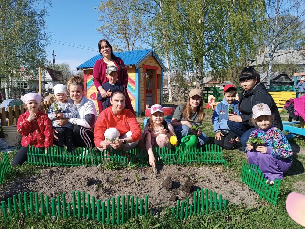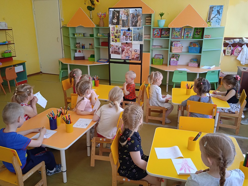 Дети подготовительной группы "Незабудка" (воспитатель Генкель С.Ю.) беседовали на тему "Моя семья", играли в игру "Назови ласково", рассматривали семейные фотоальбомы, рассказывали про свою семью. На прогулке дети и мамы высадили рассаду цветов на участке на память о своем пребывании в детиском саду.