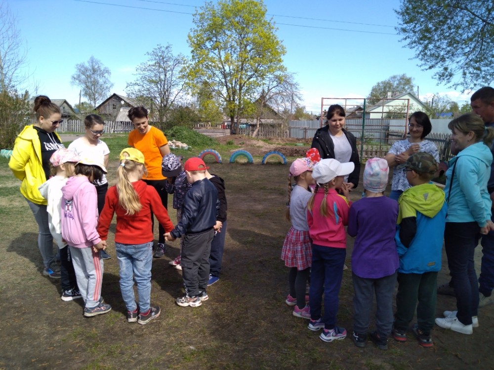 Дети и родители подготовительной группы "Затейники" (воспитатель Лазаренко Е.А., музыкальный руководитель Плинкоева Н.Н.) стали участниками традиционного майского спортивного праздника "Веселые старты", который прошел на спортивной площадке. Две команды "Орешки" и " соревновались в быстроте и ловкости. В упорных состязаниях победила команда "Орешки", но все участники получили заряд бодрости и хорошего настроения.