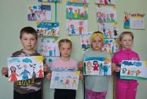 В первой младшей группе "Малышки" (воспитатель Морозова О.Н.) дети играли в пальчиковую игру "Семья", называли членов семьи, как их зовут, рассмотрели рисунки, которые нарисовали вместе с родителями дома.