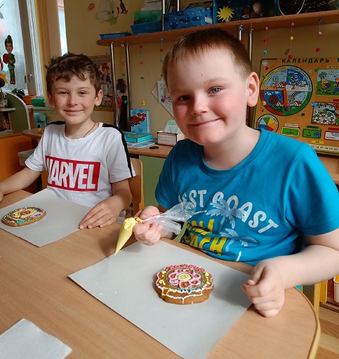 В подготовительной группе «Фиалка» (воспитатель Лекандер С.А.) в День семьи прошло тематическое занятие с просмотром презентации, прошёл мастер-класс по росписи пряников, который провела мама одного из воспитанников, Яковлева Н.Н. Дети с удовольствием расписывали пряники, а потом угощались ими.