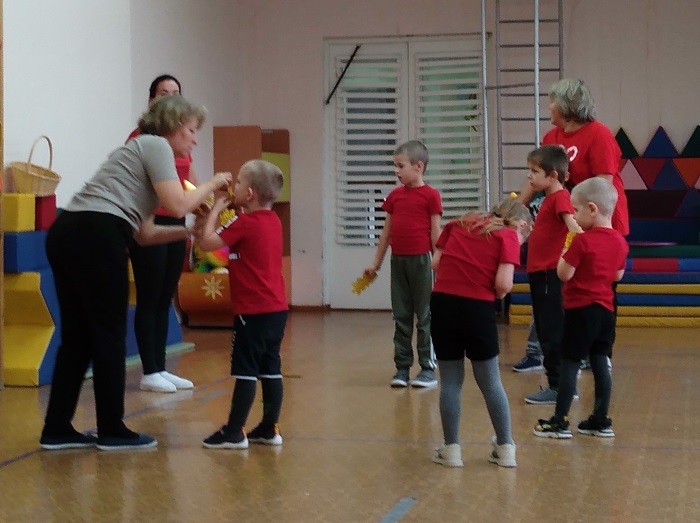 18 октября в группе компенсирующей направленности "Земляничка" был объявлен Днём Здоровья. Начался он с открытого физкультурного занятия "Путешествие в осенний лес", на котором присутствовали педагоги детского сада. Занятие провела инструктор по физической культуре Андреева Мария Ивановна. Сюжет занятия очень увлек детей - лесные гномы пригласили детей на осеннюю полянку. Вместе с гномами дети бегали, прыгали, выполняли упражнения с листочками, собирали ягоды, а также играли с медвежонком.
