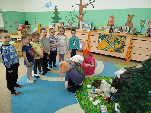 Ребята средней группы "Колокольчик" ( воспитатель Кекшоева Тамара Ивановна) познакомились с экологической сказкой " Лесное происшествие". Дети помогли зверятам прогнать из леса кучу мусора, которая захватила всю лесную поляну. Мы собрали и рассортировали весь мусор по разным мешкам. Ребята поняли, что только заботливое отношение к природе поможет сохранить жизнь на планете Земля.
