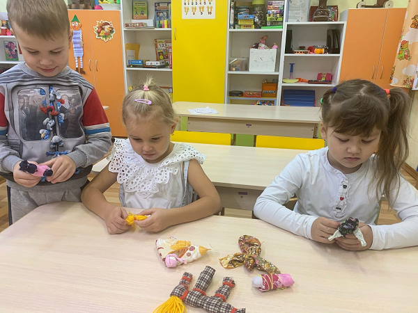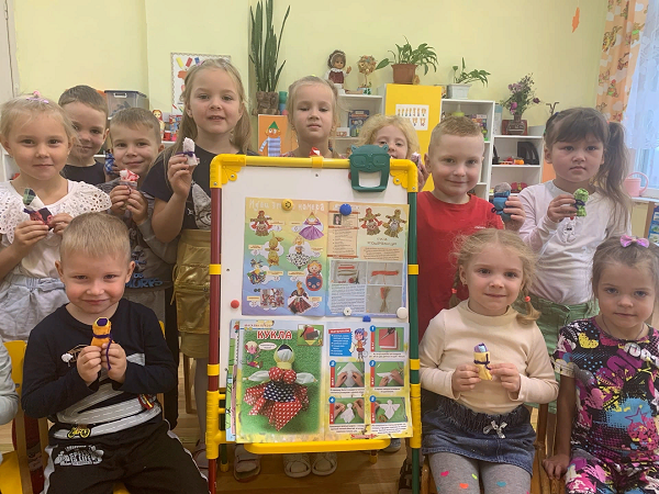В старшей группе реализуется дополнительная общеобразовательная общеразвивающая программа социально-гуманитарной направленности "Куклы народов России" с целью знакомства детей с историей народной куклы, техниками изготовления, приобщения к истокам народной культуры. На первых занятиях дети посмотрели презентацию "Куклы народов мира", познакомились с традициями славян, поверьями, учились делать куклу "Пеленашку" - оберег. В группе оформлена выставка кукол, журналов "Радуга идей", где раскрыто пошаговое изготовление кукол из разных материалов.