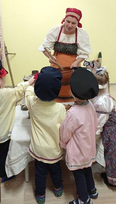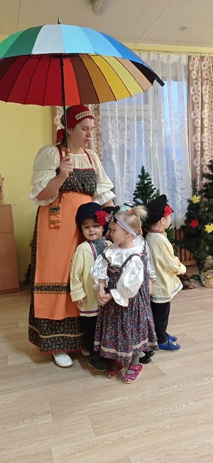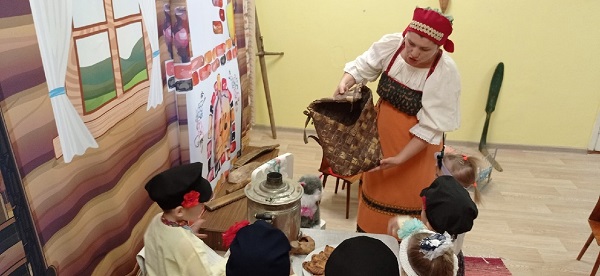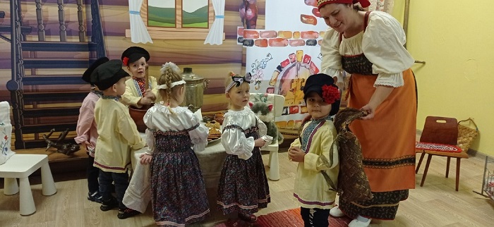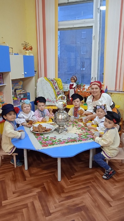 В младшей группе "Семицветик" прошло открытое мероприятие "Осенний денек в деревне". Дети вместе с воспитателем Лукиной А.В. вспомнили приметы осени, закрепили знания о домашних животных, познакомились с предметами карельского быта. Эмоционально рассказали стихи, поиграли в пальчиковые игры, слушали колыбельную песенку, а затем все вместе пили чай из самовара с калитками.