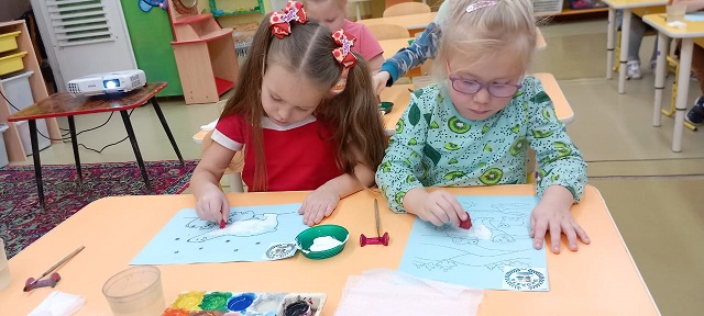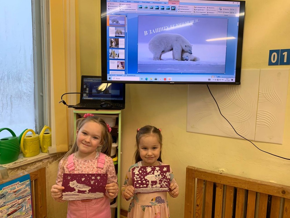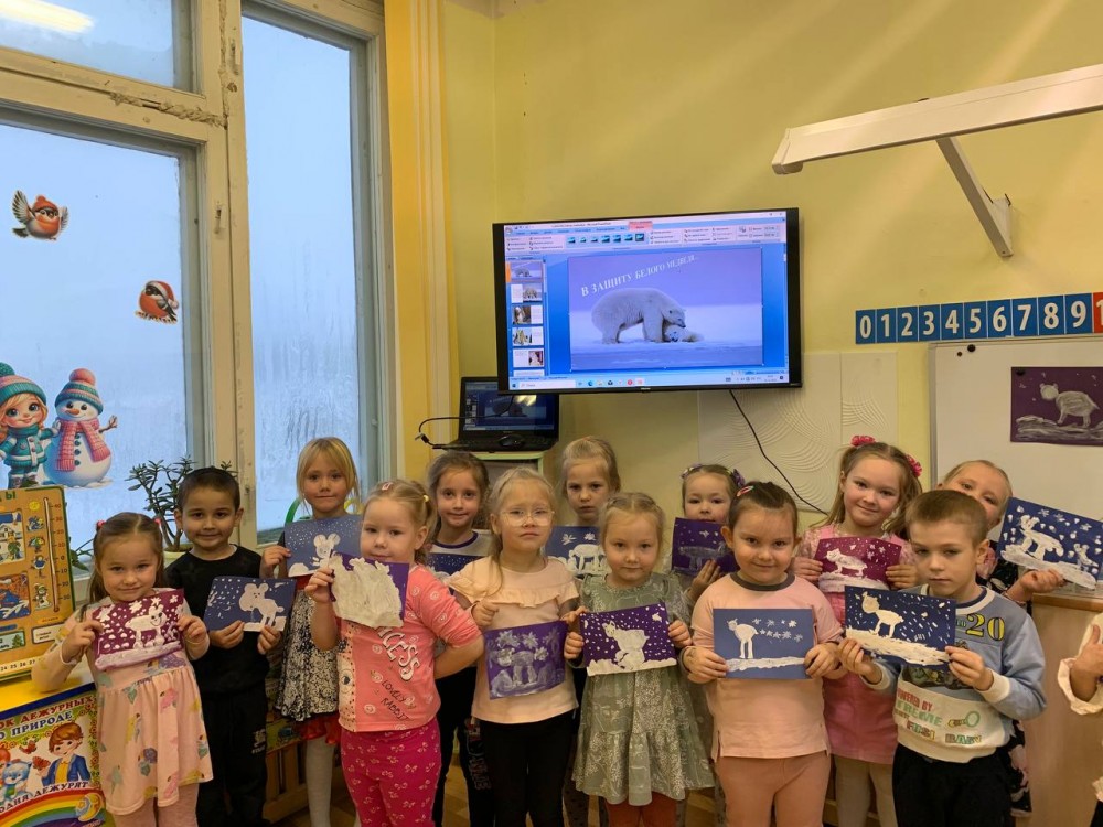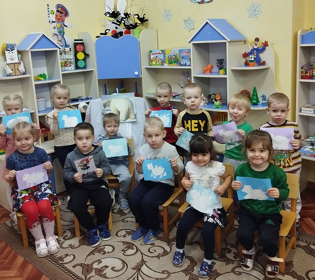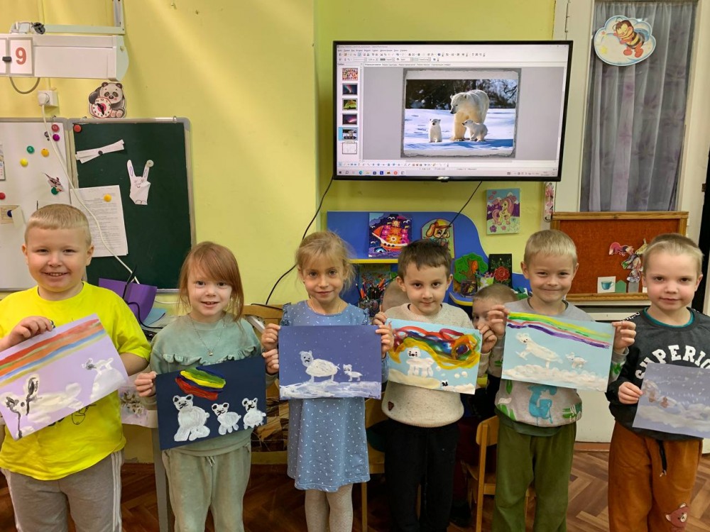 Дети старшей группы "Непоседы" (воспитатель Ананьева Галина Васильевна) приняла участие в акции по сохранению и защите белых медведей "Эколята помогайте, белых мишек защищайте". Через презентацию познакомились со сказочными героями эколятами, а также с обитателем Арктики- белым медведем, который занесён в Красную Книгу, затем дети выполнили работы по закрашиванию рисунка в нетрадиционной технике ( губкой).