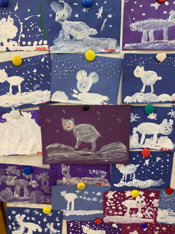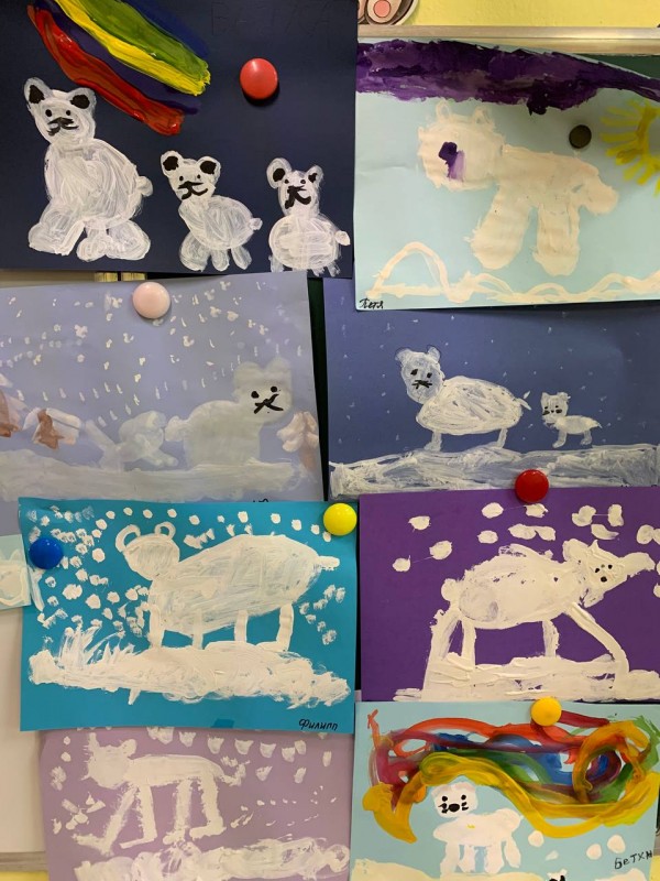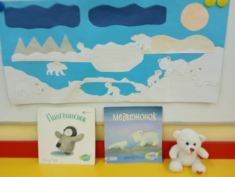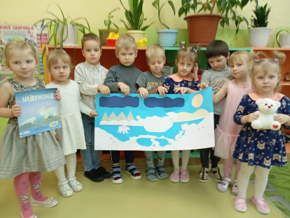 Дети средней группы "Почемучки" (воспитатель Морозова Оксана Николаевна) приняли участие в акции. Прочитали книгу Элли Паттерсон "Медвежонок" и выполнили коллективную работу " Медвежата на севере."