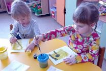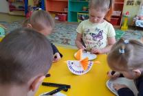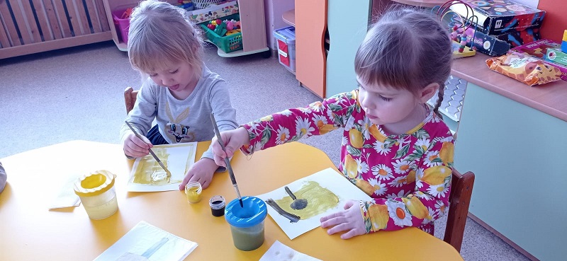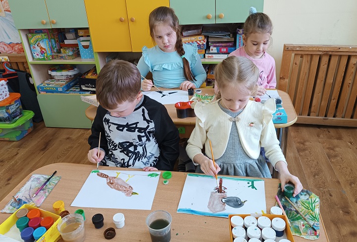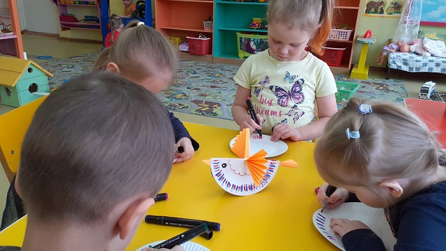 Во второй младшей группе "Ромашка" (воспитатель Ригоева Л.Н., Ильина Г.В., инструктор по физической культуре) дети играли в подвижную игру "Гусь", рисовали скворечники.