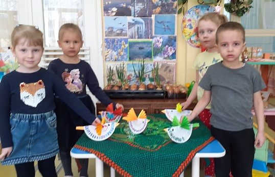 В средней группе "Почемучки " (воспитатель Бодян Л.А.) дети изготовили поделки "Весенние птахи".