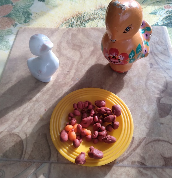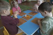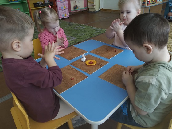 В первой младшей группе "Малышки" (воспитатель Морозова О.Н.) дети рассмотрели выставку птиц и слепили зернышки.