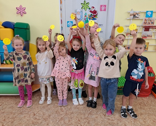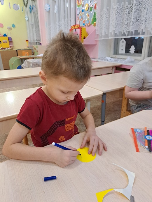 В творческой мастерской мы нарисовали и вырезали смайлики в жёлтом цвете фликеров!