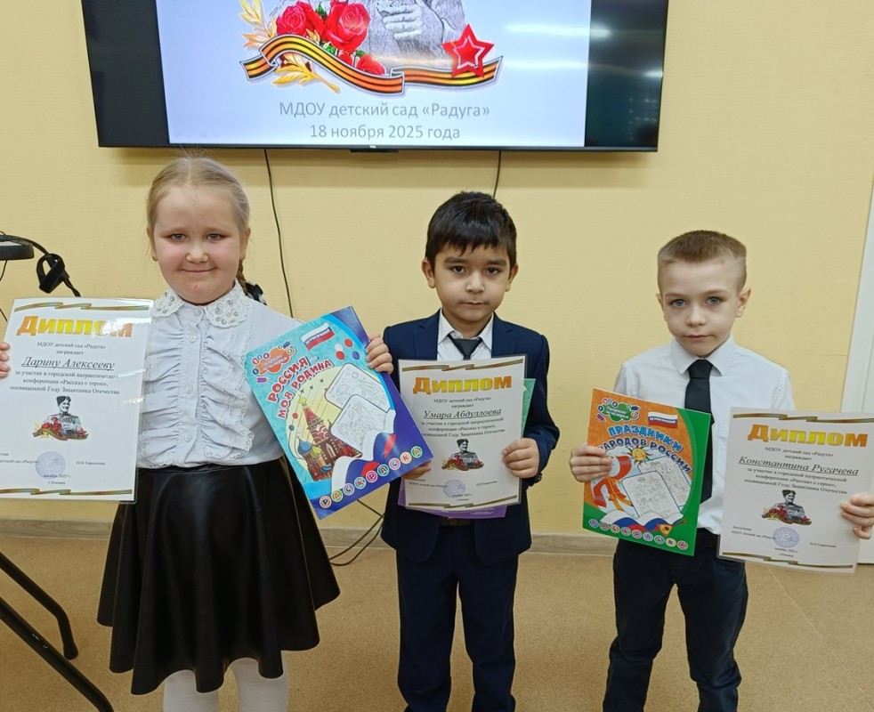В ноябре 2025 года в каждом здании нашего детского сада прошли мини-конференции, на которых дети представили рассказы о памятных местах времен Великой Отечественной войны и о героях. В конференциях приняло участие 25 детей. Для участия в городской конференции были выбраны 11 самых интересных выступлений.