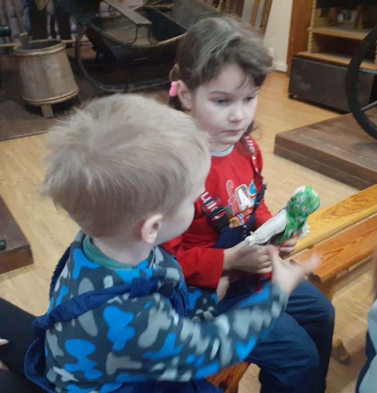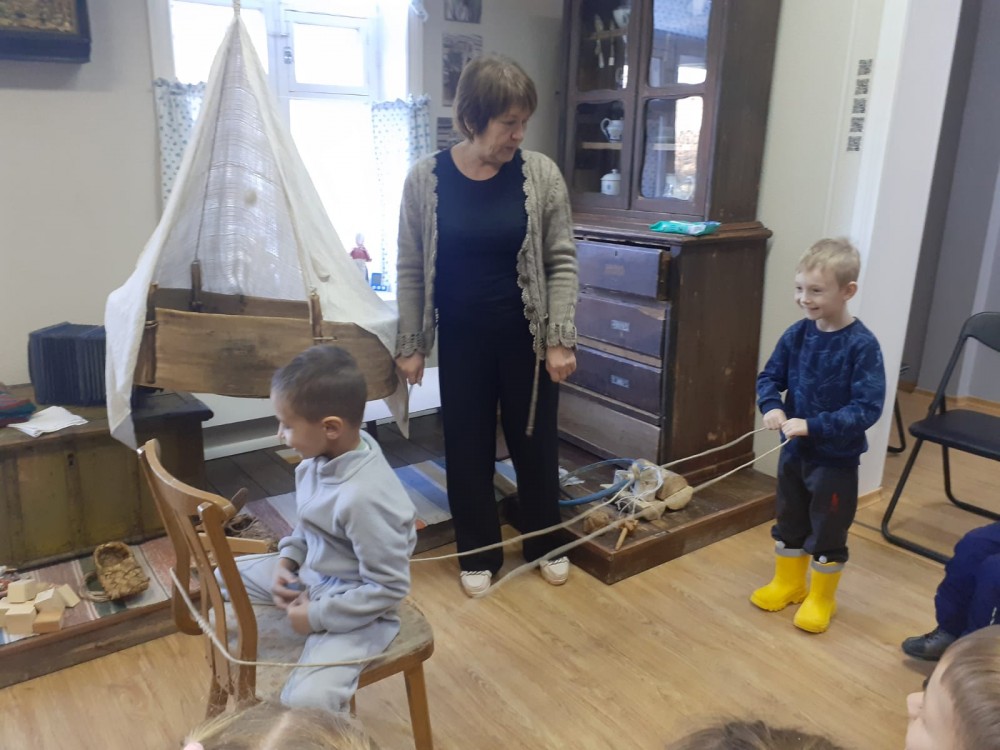 Старшая группа "Непоседы" (воспитатель Бодян Л.А., инструктор по физической культуре Андреева М.И.) побывала в Олонецком национальном музее на занятии "Игры и игрушки". Наши воспитанники узнали в какие игры и игрушки играли дети в прошлом. Например, превращали ложку в куклу, стул в коня, платочек в зайчика, с помощью верёвочки играли в подвижные икры. Дети тоже поиграли с такими игрушками. Всем очень понравилась встреча в музее, было увлекательно и занимательно. Благодарим Туттуреву Людмилу Васильевну за познавательное музейное занятие.