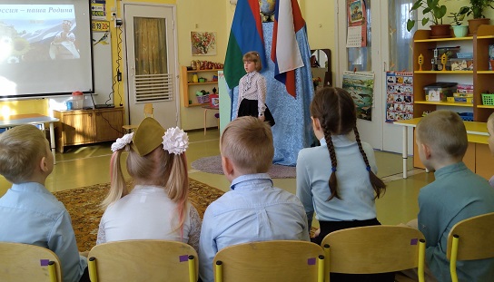 Дети старшей группы "Непоседы" (воспитатель Ананьева Галина Васильевна) читали стихи и говорили о своей стране.