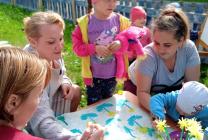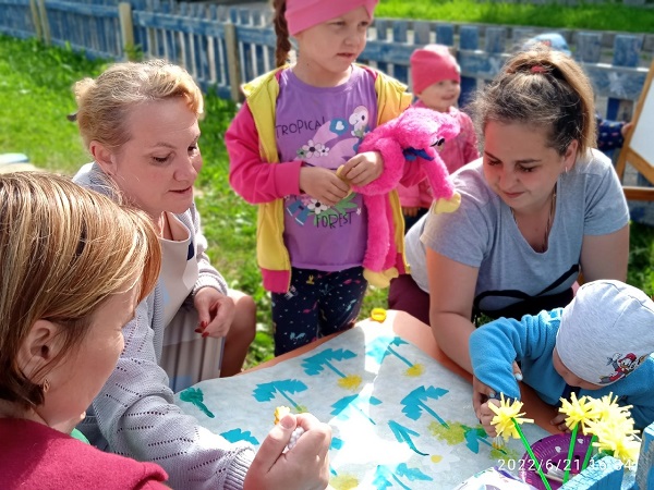 Родителям и малышам групп «Одуванчик» и «Малинка» воспитатели Феклистова В.В., Ригоева О.П., Чирикова А.Г. предложили нарисовать полянку с одуванчиками нетрадиционным способом: ватными палочками. «Носит одуванчик жёлтый сарафанчик. Подрастёт - нарядится в беленькое платьице: лёгкое, воздушное, ветерку послушное».