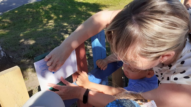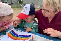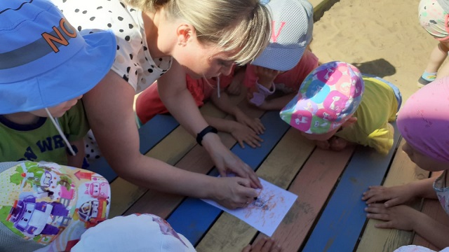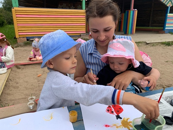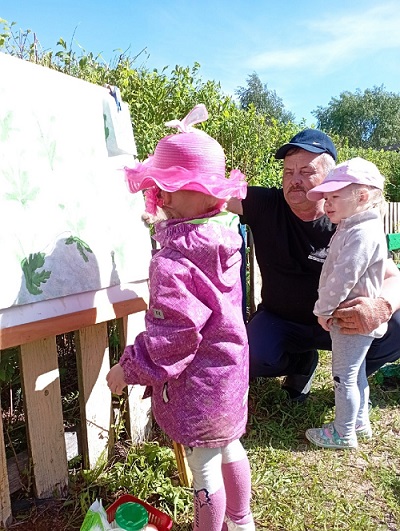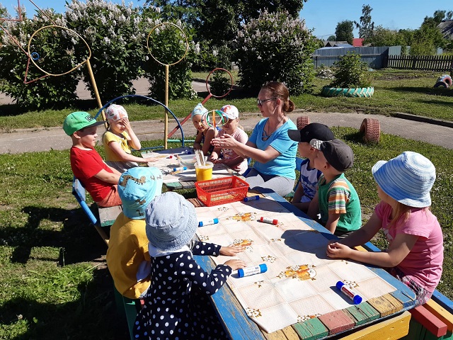 В средней группе «Ромашка» под руководством воспитателя Зайцевой Е.И. дети с родителями познакомились с нетрадиционным способом рисования — монотипия и проявили фантазию и творчество на тему «Лето, лето, лето, ты какого цвета? Много ярких красок ты приносишь нам». А с воспитателем Веселовой А.Ю. все увлеченно рисовали "Летний пейзаж".