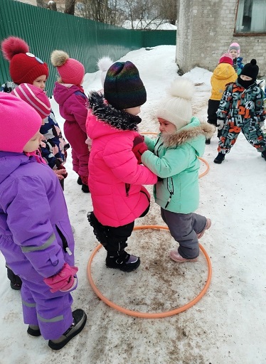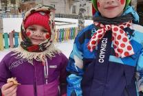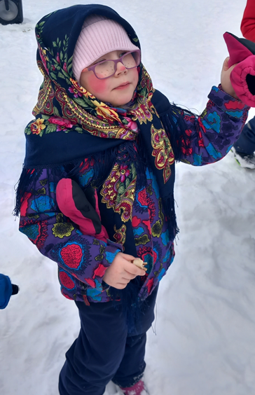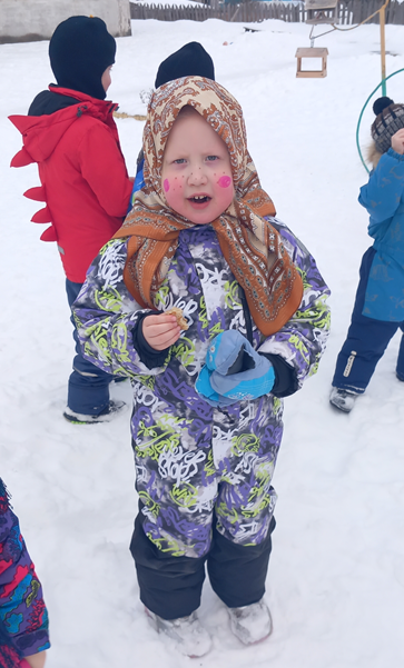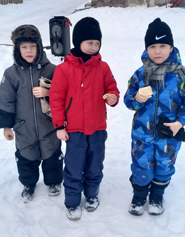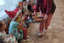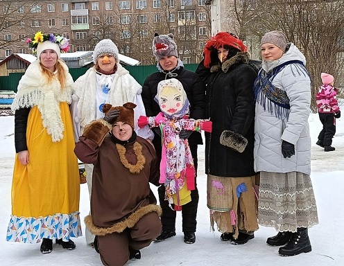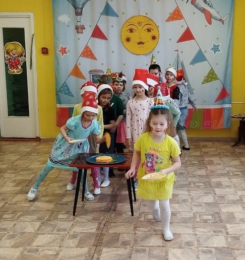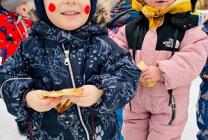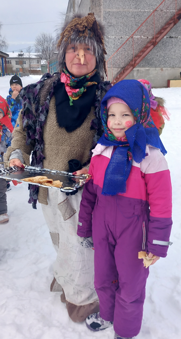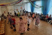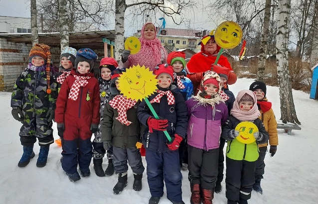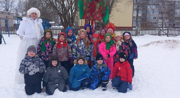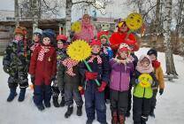 Для детей групп "Березка", "Ромашка", "Рябинка" (ул. Школьная, 23А) "Широкая Масленица" началась веселым, дружным хороводом. Дети и педагоги (Андреева Мария Ивановна, Андреева Алевтина Анатольевна, Генкель Светлана Юрьевна, Зайцева Елена Ивановна, Иванова-Плинкоева Зинаида Николаевна) под озорную музыку плясали и играли, весну закликали, Зиму прогоняли, Масленицу искали, блинами угощались.
