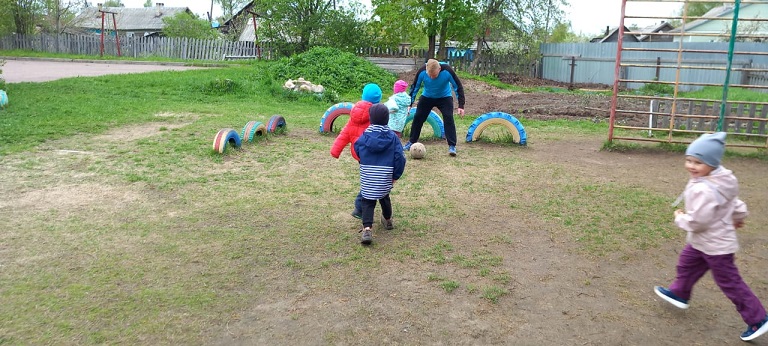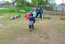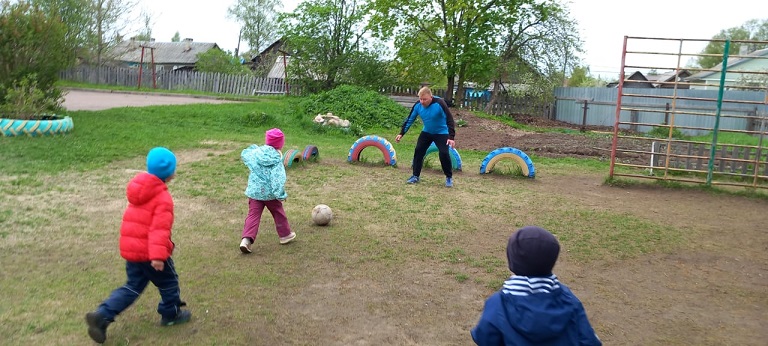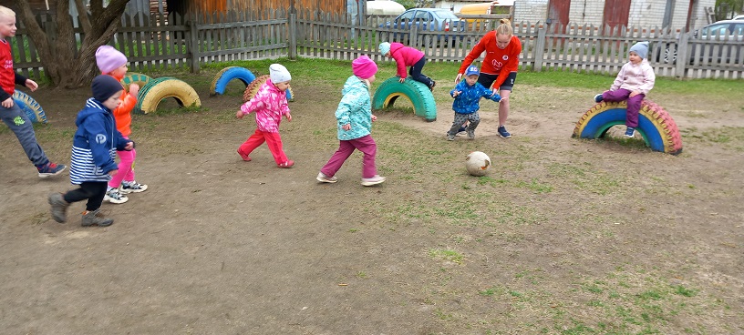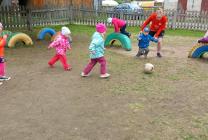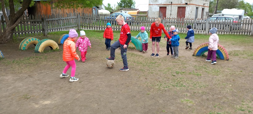 19 мая для малышей второй младшей группы "Крепыши" (воспитатель Ананьева Г.В.) семья Гришиных: Владимир Александрович, Нонна, Давид, Стас, Вика провели мастер класс по футболу. Они познакомили детей с правилами игры в эту увлекательную спортивную игру. Показали интересные приемы ведения мяча. Дети получили огромную радость.