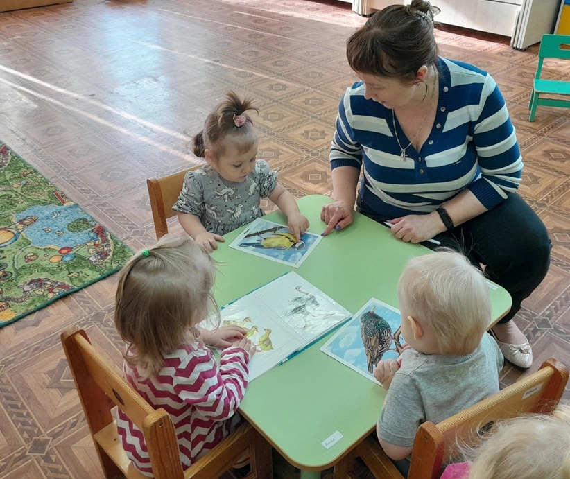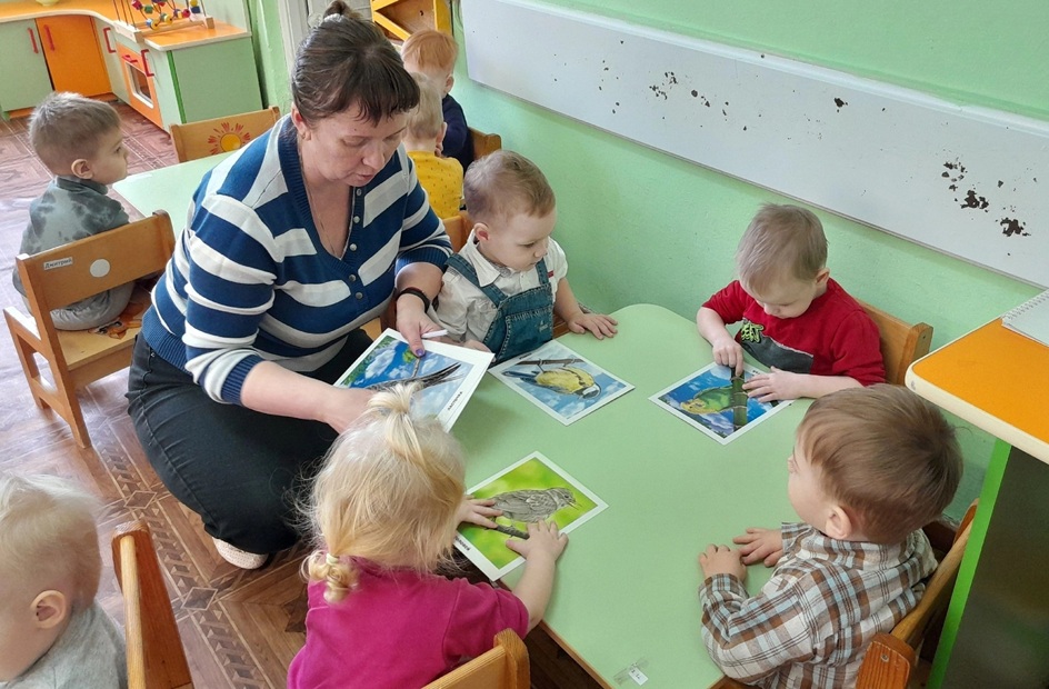 Малыши группы раннего возраста "Пчелки" (воспитатель Шишкарева Марина Васильевна) на увлекательном занятии называли пернаты друзей, изображали их повадки.