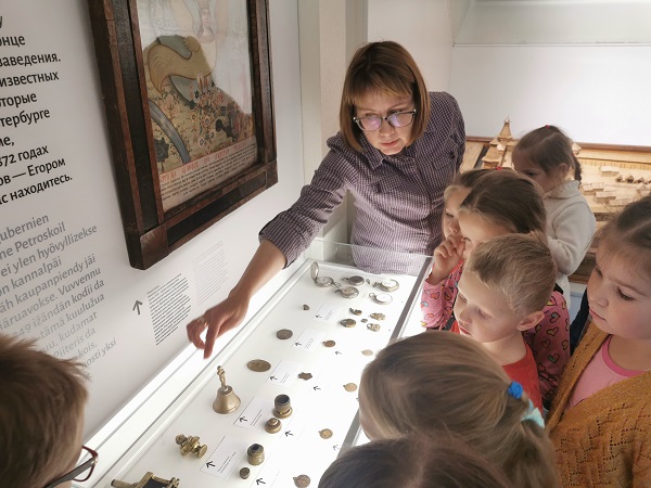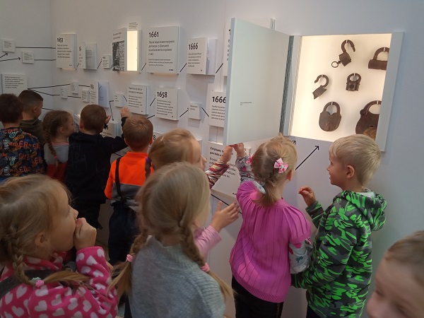 В подготовительных к школе группах реализуется музейно-образовательная программа "Дом и что в нем". На первом занятии "Знакомство с музеем" ребята познакомились с профессиями музейных работников, прошли по экскурсионным залам, рассмотрели экспонаты. Закрепили правила поведения в музее. Впереди детей ждет много интересных встреч: "Строим дом", "Новоселье", "Печь-хозяюшка", Накрываем на стол", "Заглянем в сундук", "Ребенок в доме", "Заходим в хлев", "На охоту, на рыбалку", "Баня лечит, баня правит", "Утро в карельской семье".
