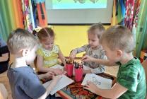 Дети подготовительной группы «Непоседы» (ул. Красноармейская, 26А), войдя в зал в народных костюмах, поразили яркостью красок. Раскраски с изображением народных инструментов стали интересным сюрпризом для ребят.