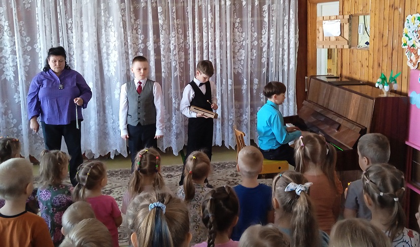 16 мая в детском саду прошла замечательная творческая встреча детей дошкольных групп здания Володарского, д.39 с обучающимися «Центра дополнительного образования» и преподавателем Ириной Владимировной Стаппиевой. Доброжелательная обстановка царила в «Музыкальной гостиной». Гости подготовила концерт и рассказали, как они подружились с музыкой. Педагогам и детям очень понравилось выступление юных музыкантов. «Дружите с музыкой- тогда будете веселы и сильны»- пожелали гости детям и взрослым детского сада.