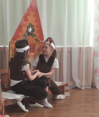 Дети подготовительной группы "Василек" (воспитатель Тихонова А.Г.) стали артистами и представили поучительную сказку "два жадных медвежонка" для зрителей подготовительной группы "Незабудка".